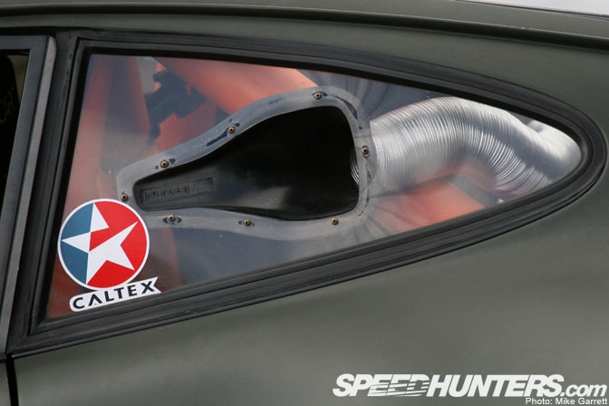 Poursuivant sur le thème prêt au combat, nous avons les fenêtres en plastique dotées de conduits qui alimentent l'air frais à l'arrière de la voiture. Il suffit de regarder cette vitre de custode arrière, les lignes et la couleur ne vous rappellent-elles pas les avions de combat de la Seconde Guerre mondiale ? Bien que la voiture ait considérablement réduit son poids par rapport aux chiffres d'origine, en raison de la convivialité accrue du conducteur, cette voiture pèse toujours environ 100 kg de plus que la machine personnelle de Nakai-san.