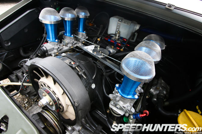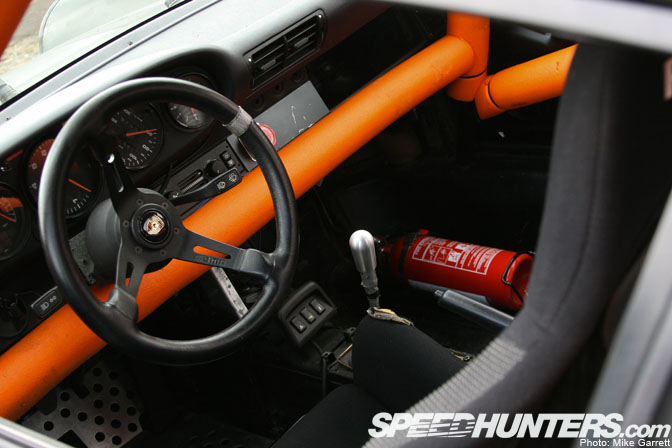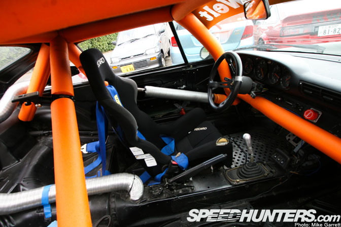 Ici, vous pouvez voir le beau volant Momo d'origine et le reste de l'intérieur minimaliste. La transmission de cette voiture est l'une des unités G50 de Porsche qui provient d'une 911 de 1987. Cette « mission » particulière a été sélectionnée pour sa facilité d'utilisation par rapport à celle de la voiture de Nakai. Nakai-san a déclaré : « Cette voiture est si facile à conduire que même une femme peut la conduire. »