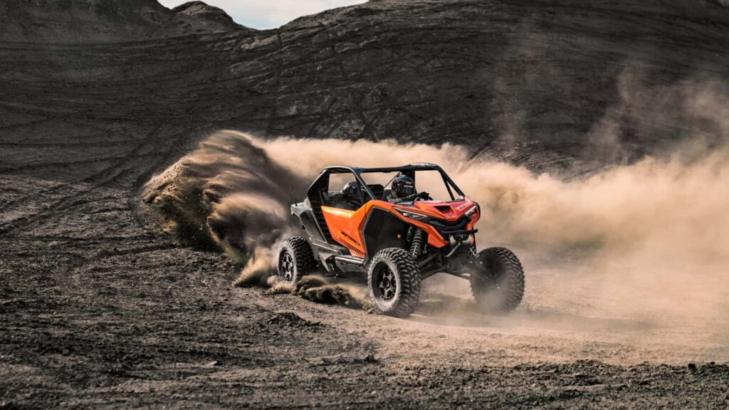 Commençons par le cœur. Vous disposez d’un triple turbocompressé de 998 cm3 développant 154 chevaux et 107 livres-pied de couple. C’est un résultat sérieux, mais ce qui compte le plus, c’est la manière dont il est livré. Il est conçu pour être large et utilisable, de sorte qu’au lieu d’un coup de turbo soudain, vous obtenez une traction forte et linéaire, que vous rampiez à travers les rochers ou que vous soyez grand ouvert sur le sable. Bosch EFI gère le ravitaillement et la configuration CVT incluse aide à maintenir la cohérence lorsque les conditions deviennent compliquées. Vous bénéficiez également des modes d’accélérateur Confort, Trail et Sport, ce qui vous permet de rappeler les choses ou de les laisser se dérouler en fonction du chaos de votre journée.