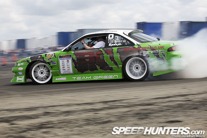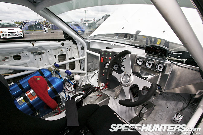 Dans la classe Pro, la Skyline fortement traînée de John Bradshaw (parachute, énormes roues arrière) a résisté à la Mazda RX7 de Chris Impey pour la victoire.