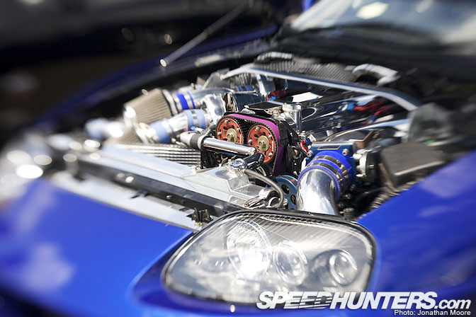 Les propriétaires de Supra semblaient être les plus désireux de montrer les compartiments moteur chromés et les améliorations du moteur. Bien entendu, les kits turbo HKS étaient partout.