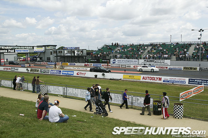 Il y a un coin de Santa Pod qui est pour toujours le Japon. Il semblait juste de voir des hordes de clubs automobiles japonais remplir le stand dur qui longe la piste d'accélération : des supra-voitures les plus grosses et les plus méchantes aux berlines de ville plus modestes en passant par les classiques les plus propres de ce côté de Tokyo.