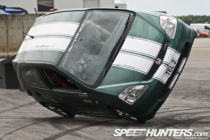 La grande finale consistait à entasser toutes les filles dans cette Civic et à se lancer dans une course à deux roues hors de la rampe : il la maintenait en équilibre sur toute la longueur de l'arène de maniement, avant de se garer entre les voitures TVR et Legends. Alors, la facture de Terry pour cette séance : huit pneus neufs et un jeu de suspensions Honda ?